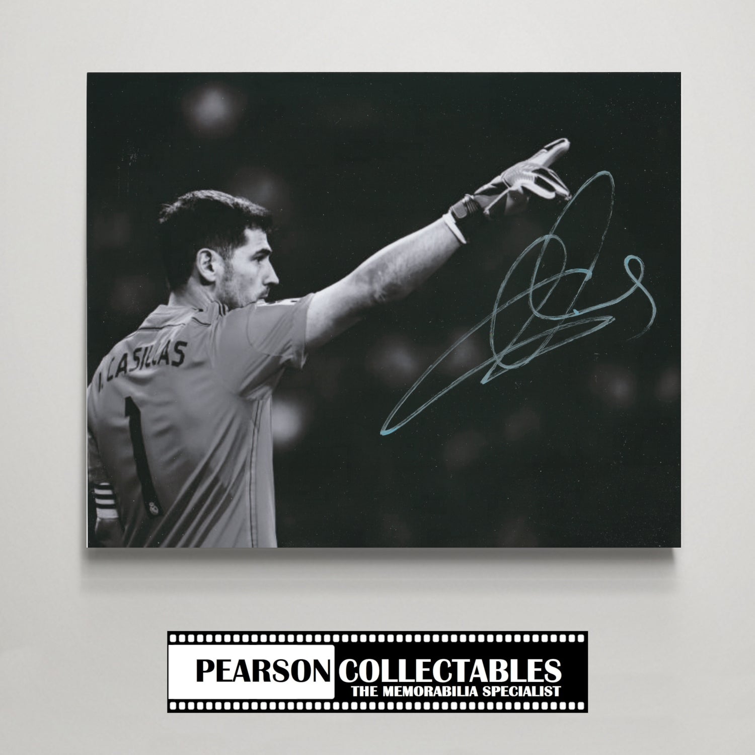 The photo is personally hand-signed by Iker Casillas, making it a highly desirable collectible for fans of the sport. A key figure for both Real Madrid and Spain national football team, Casillas played a vital role in multiple historic victories, including domestic and international triumphs.