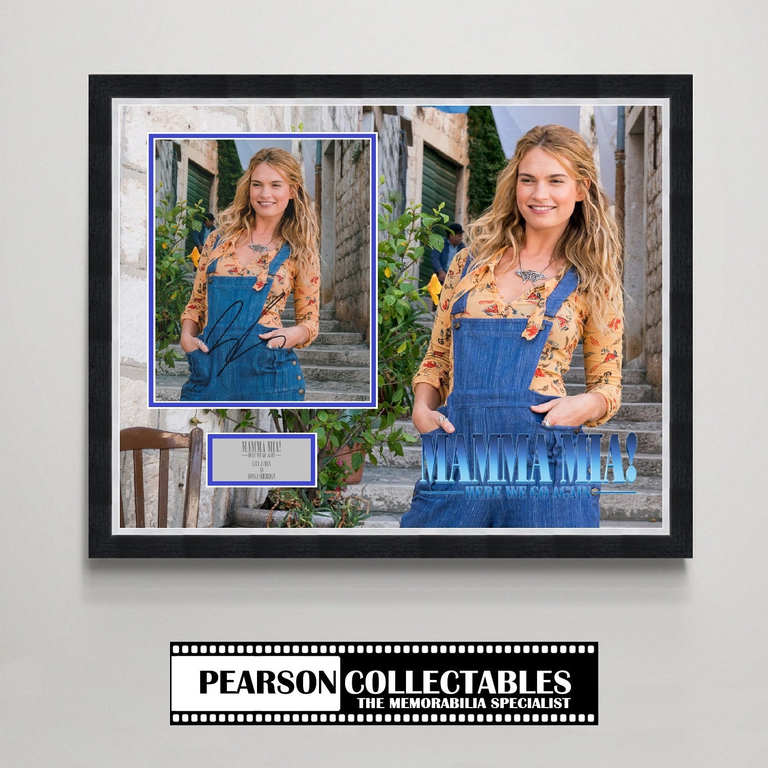 Description: Lily James 'Mamma Mia! Here We Go Again' autograph display.