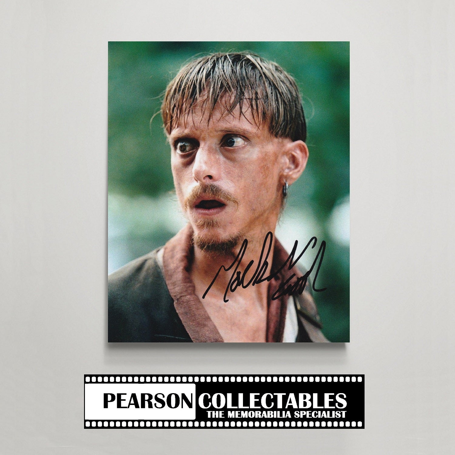 Description: Professionally lab printed on premium lustre-finished photo stock, this high-quality 8x10" photo features an image of 'Pirates of the Caribbean' character Ragetti, hand-signed by actor Mackenzie Crook.