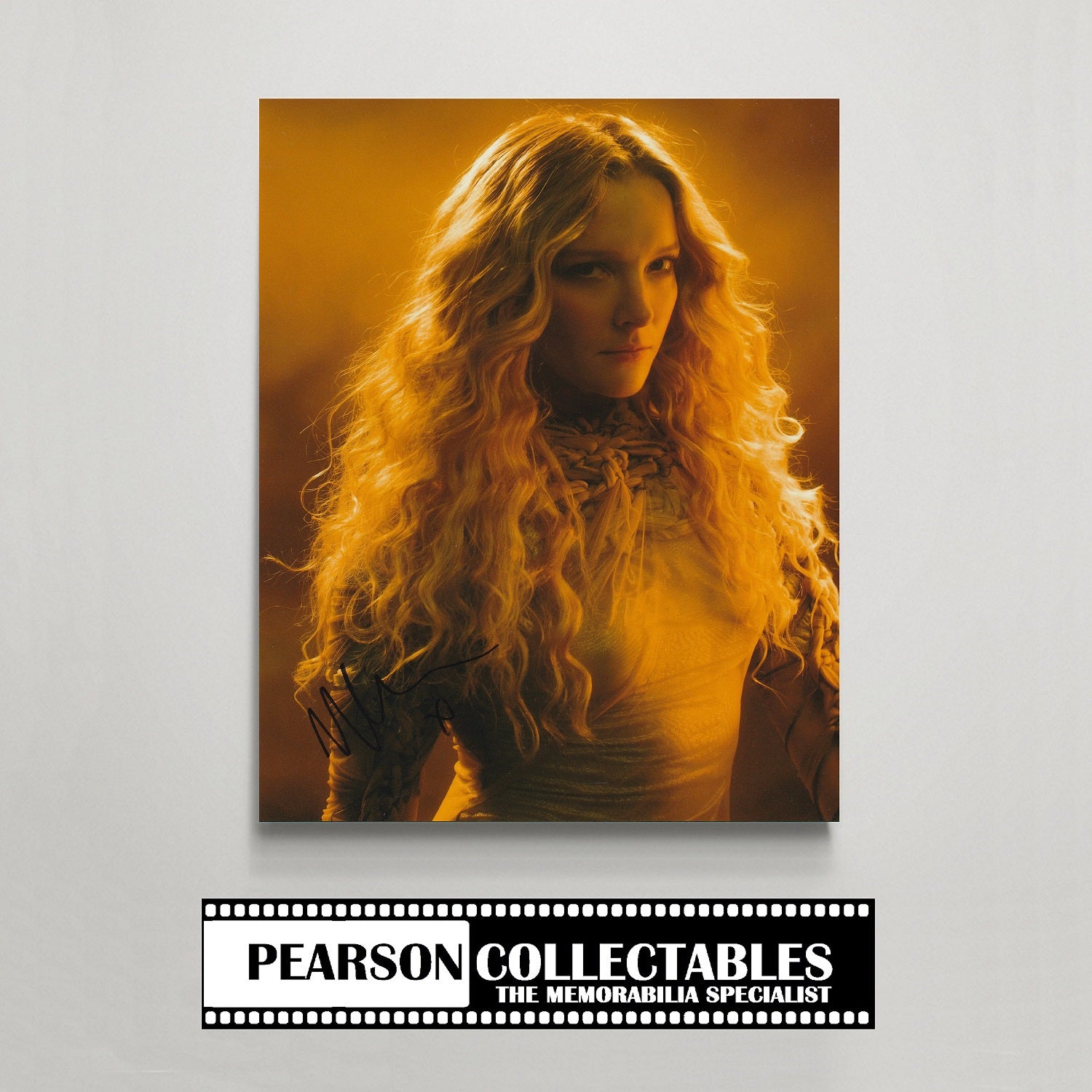 Description: Professionally lab printed on premium lustre-finished photo stock, this high-quality 8x10" photo features an image of 'The Lord of the Rings: The Rings of Power' character Galadriel, hand-signed by actress Morfydd Clark.
