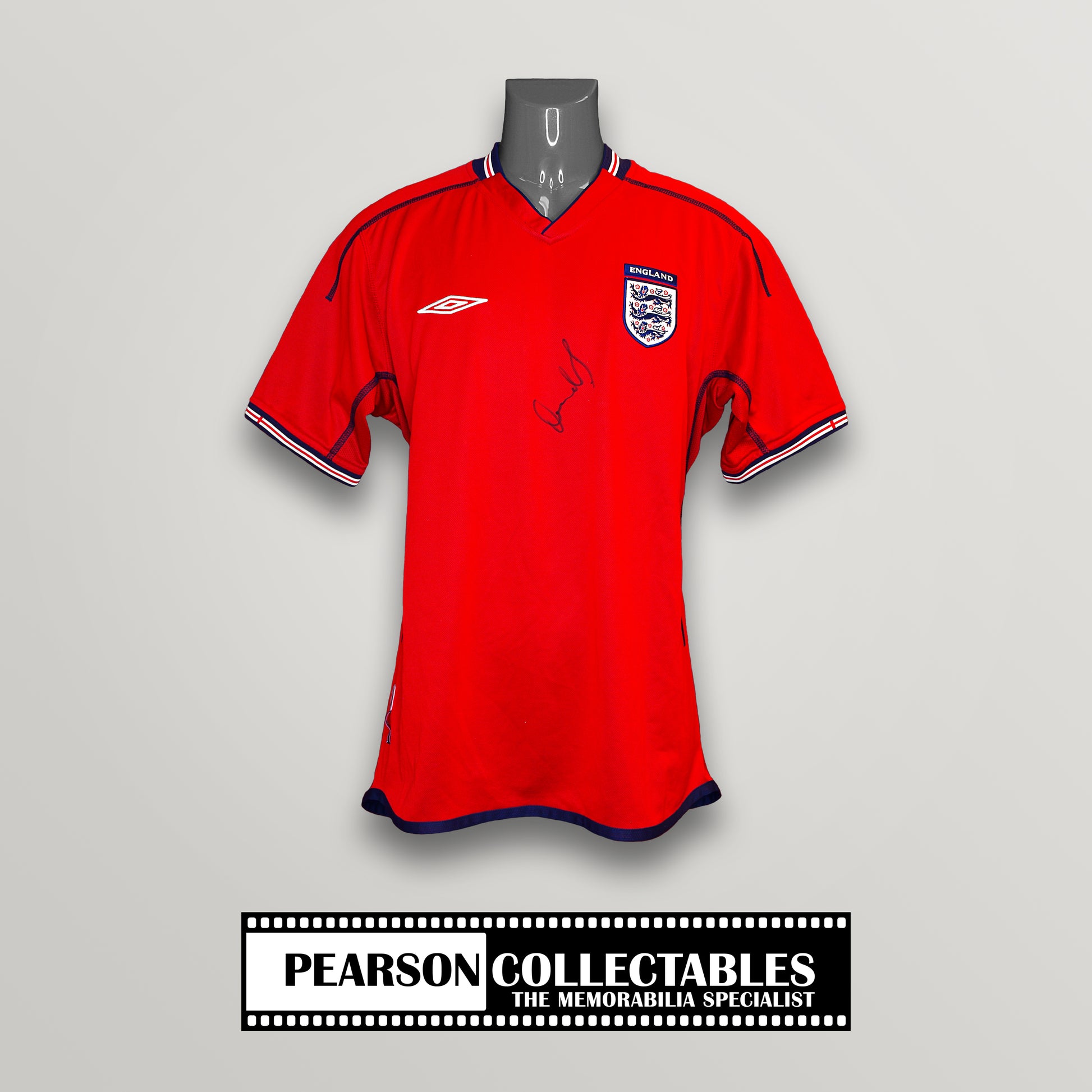 Description: Rare and highly collectible, this England away kit shirt from the 2002-04 era is personally signed by team stalwart, Owen Hargreaves. Featuring the classic deep red design with red, white and navy trim, this shirt style was worn during a defining period for the English national team, including the 2002 FIFA World Cup in Japan and South Korea.