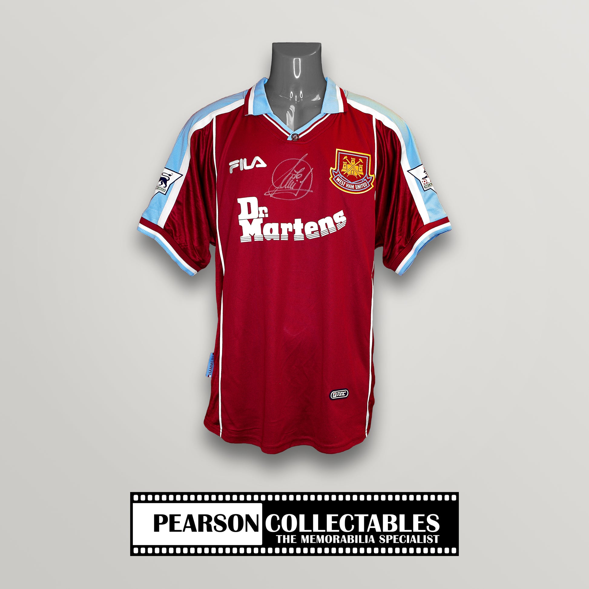 Description: Celebrate a true Premier League icon with this 1999-2001 West Ham United home shirt, personally signed by team legend Paolo Di Canio. Featuring the classic claret and blue design, this shirt is instantly recognisable to Hammers fans as the kit worn during one of the club’s most exciting eras.