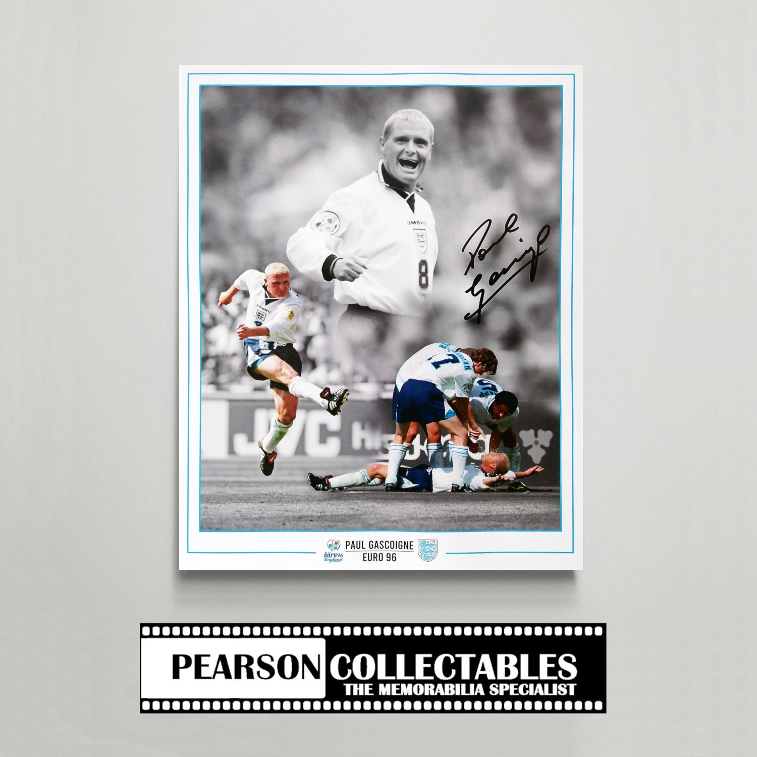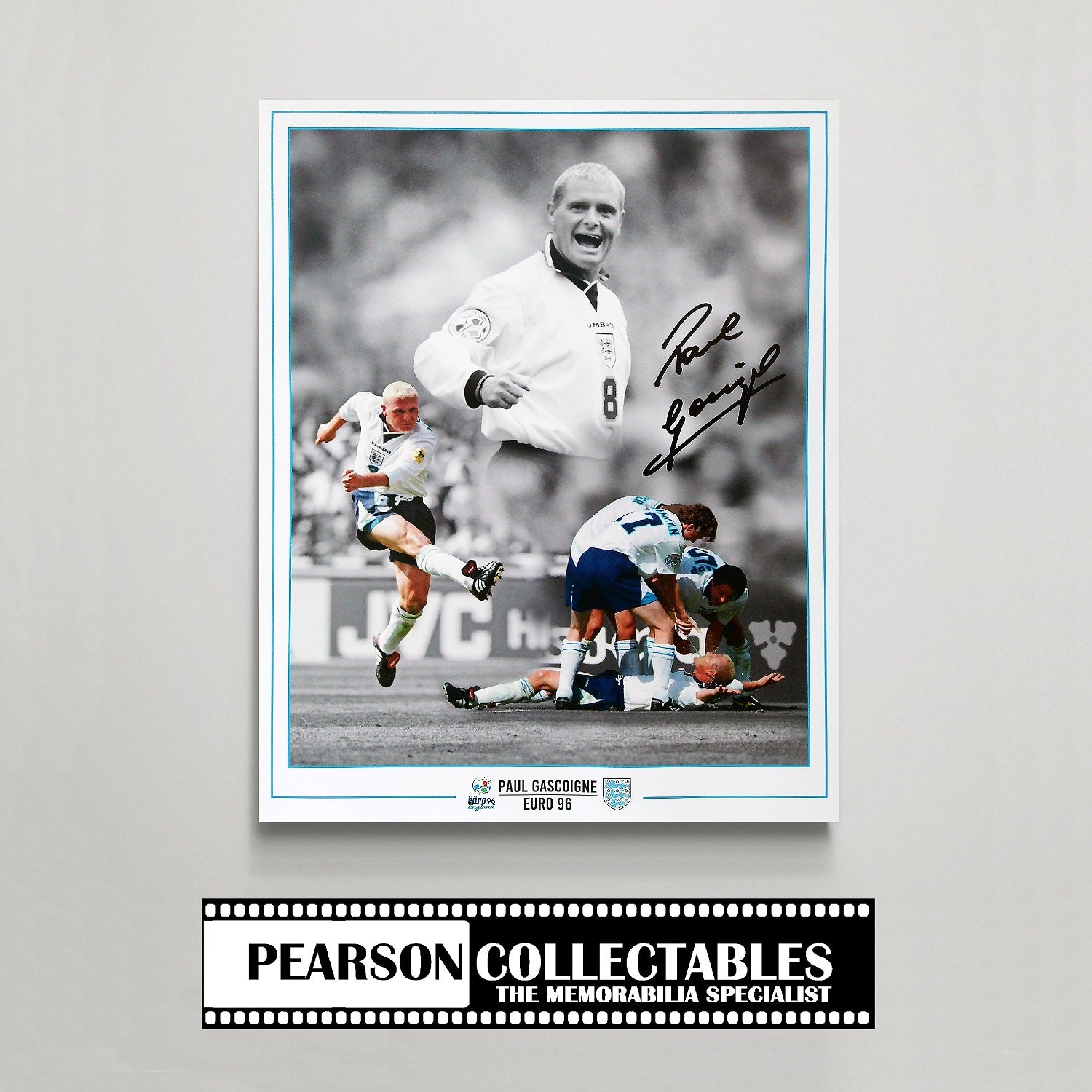Description: Celebrate one of the most iconic moments in English football history with this exclusive signed Paul Gascoigne Euro ’96 16x12'' montage photo, available only from Pearson Collectables. Honouring Gascoigne’s unforgettable impact during the UEFA Euro 1996, this stunning piece captures the flair, confidence, and sheer brilliance that defined his tournament.