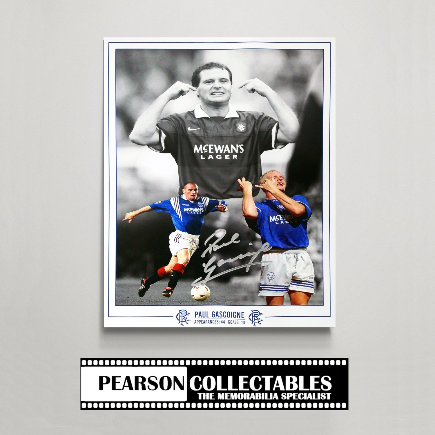Exclusively available from Pearson Collectables, this signed montage combines rarity with heritage—making it an essential addition for Rangers supporters and football memorabilia collectors alike.