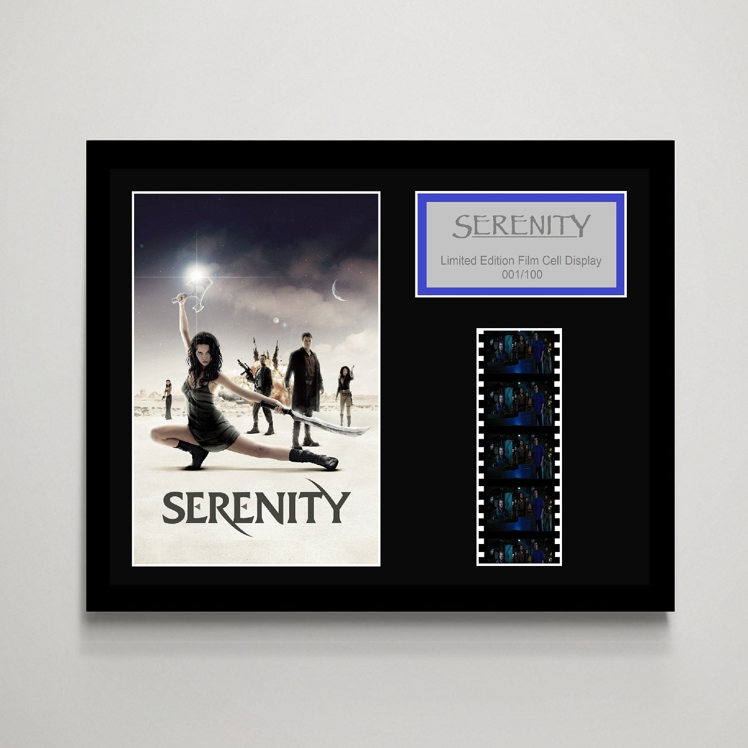 Description: Bespoke film cell display limited to 100 and individually numbered, and finished in a matte black frame with dual sided glazing. USB powered back light option available.